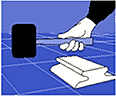 • Sur une surface de carrelage d’environ 1 m2, étaler le produit en oblique avec une raclette en caoutchouc souple jusqu’au garnissage en profondeur du joint. Après quelques minutes, nettoyer la surface carrelée à l’aide d’une éponge humide.