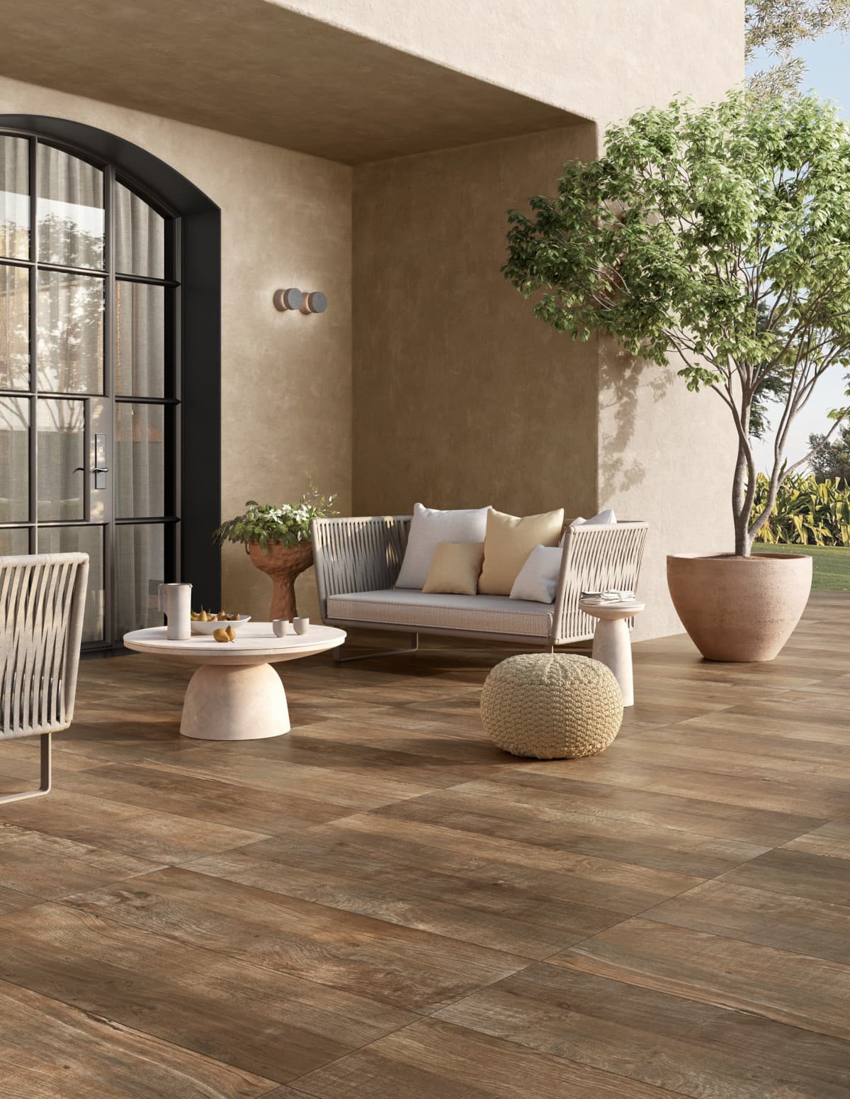 Dalles épaisseur 20mm dans la vraie dimension du bois : Inspiration larges lames de bois exprimant tous les caractères du bois – veines, légers nœuds , fibres claires – et offrant de belles nuances de couleurs naturelles. Coloris mélangés sur plusieurs dalles = un charme écologique vraiment authentique en extérieur !