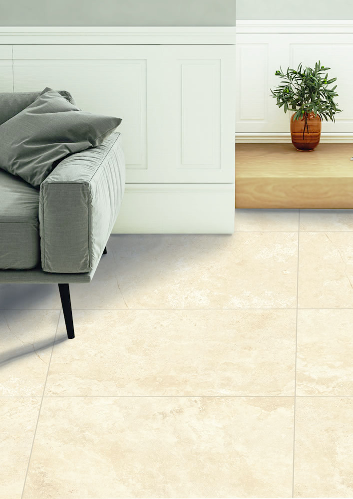 Mieux que la pierre naturelle appelée Travertin coloris “Beige light” : toutes les qualités du grès cérame vitrifié déclinées dans le format le plus authentique de la véritable pierre = 40×60 !