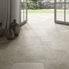 Comme une pierre calcaire clivée mélangeant 4 formats classiques en épaisseur 9mm : 40×60, 40X40, 20X40 et 20X20. composition de grès cérames en nuances veinées claires rappelant une pierre naturelle authentique.